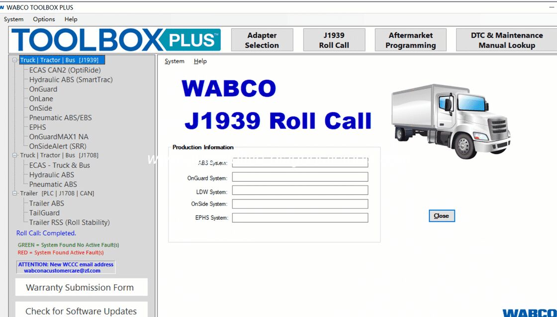 Kluczowe funkcje 1. Kompleksowa diagnostyka:TOOLBOX PLUS obsługuje diagnostykę systemów WABCO, w tym ABS, elektronicznych układów hamulcowych (EBS), systemów kontroli stabilności i funkcji bezpieczeństwa, takich jak łagodzenie skutków kolizji. 2. Programowanie ECU:Technicy mogą przeprogramować ECU WABCO, umożliwiając aktualizacje i ponowną kalibrację w celu optymalizacji systemu i zgodności z przepisami. 3. Monitorowanie danych w czasie rzeczywistym:Oprogramowanie dostarcza aktualne dane, umożliwiając technikom monitorowanie kluczowych funkcji pojazdu, takich jak skuteczność hamowania i kontrola stabilności. 4. Testowanie i kalibracja systemu:TOOLBOX PLUS umożliwia technikom testowanie komponentów systemu, zapewniając prawidłową instalację i funkcjonalność. Obsługuje także kalibrację ABS i innych układów krytycznych dla bezpieczeństwa. 5. Zarządzanie DTC:Odzyskaj i usuń diagnostyczne kody usterek (DTC), aby przyspieszyć proces naprawy i skrócić przestoje.